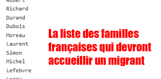 Le gouvernement Cazeneuve a annoncé aujourd’hui les noms des 200 familles qui devront accueillir dans les prochains mois chez eux. Il s’agit principalement de migrants de la jungle démantelée de Calais mais également de tous les nouveaux migrants qui arriveront en France dans les prochains mois et années. Voici la liste des familles qui devront bientôt … Lire la suite de Découvrez la liste des 200 familles qui devront accueillir bientôt un migrant.